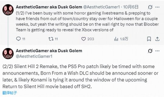 Dusk Golem分析称,DLC的公布/上线可能会与2026年改编电影《重返寂静岭》上映同步。