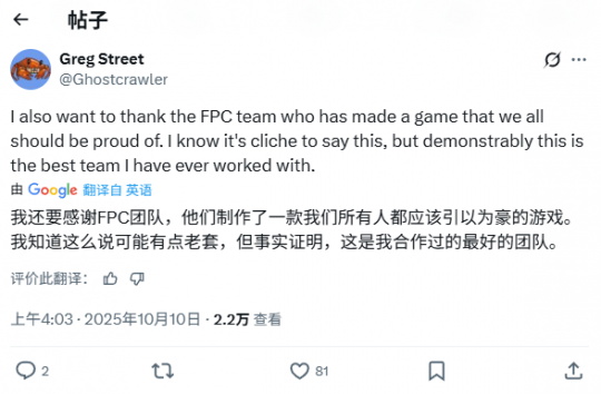 他还向团队表达了敬意:“Fantastic Pixel Castle的开发团队创造了一款值得我们自豪的游戏。这是我职业生涯中合作过的最优秀团队之一,团队士气和表现的数据都创下了我所见过的最高水平。”