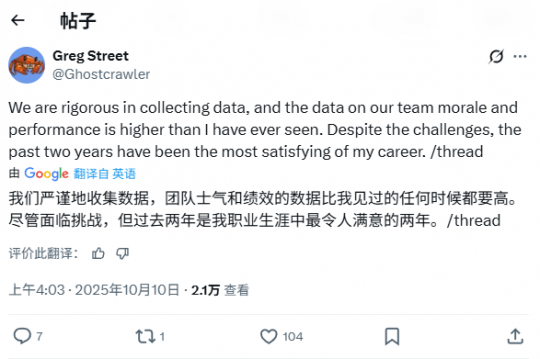 Street最后表示:“尽管面临重重挑战,过去两年依然是我职业生涯中最令人满足的时光。”