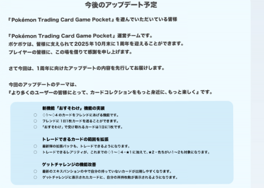 宝可梦社宣布,旗下将卡牌融入数字化的好评游戏《宝可梦卡牌Pocket》将于近期开启最新更新,不少玩家期待已久的新实用功能即将上线,一起来先睹为快。