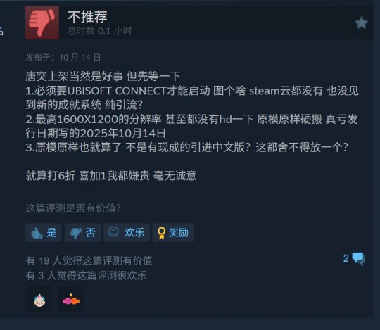 据玩家反应,《细胞分裂2:明日潘多拉》必须使用UBISOFT CONNECT才能启动,分辨率最高只有1600x1200,甚至没有高清分辨率,属于照搬原版。