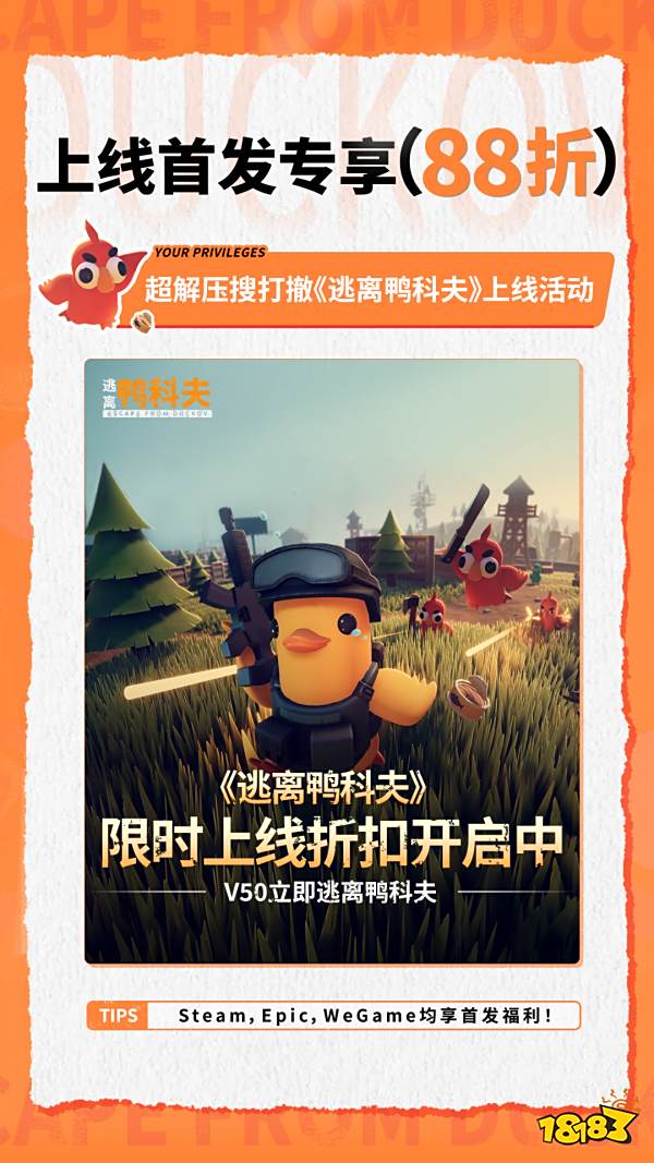 想在荒诞幽默的卡通鸭子星球上体验自由搜打撤的乐趣吗?今日(2025年10月16日),由哔哩哔哩游戏发行、旗下自研团队“碳酸小队”倾力打造的,鸭子题材单人俯视角掠夺撤离式射击游戏《逃离鸭科夫》正式发售,游戏首发登陆PC平台,Steam国区售价58元人民币,10月29日前购买限时优惠仅需51.04元人民币。