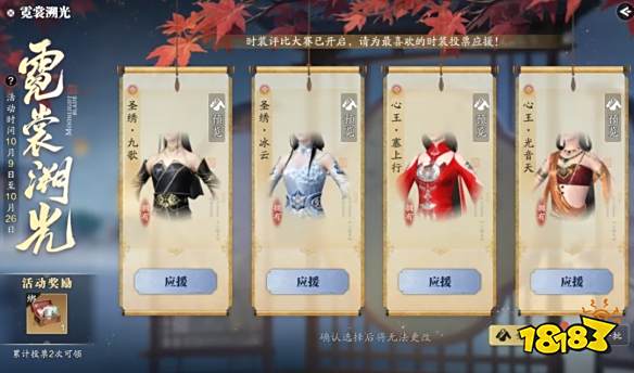 10月16日5:00-10月27日5:00,少侠可以揭榜查看最终时装票选排行啦,还可以额外获赠问影晶石*10哦~票选结果前5名的时装将于10月16日19:00-10月22日12:00在商城以3折超低折扣限时售卖!