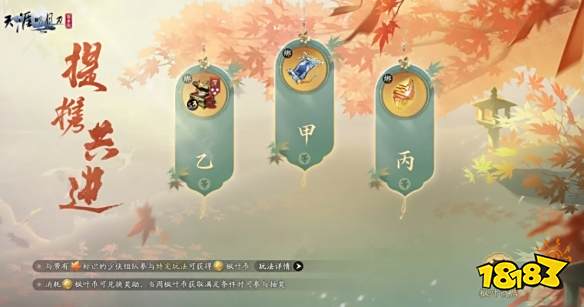 为了给予少侠更多获得感与福利保障,与带有枫叶信物的少侠组队参与部分玩法时,双方都能获取【枫叶币】奖励,于【活动-提携共进】的枫叶商店中兑换曜石、璞玉宝匣、外观自选礼盒等好礼,让江湖陪伴一路满载!