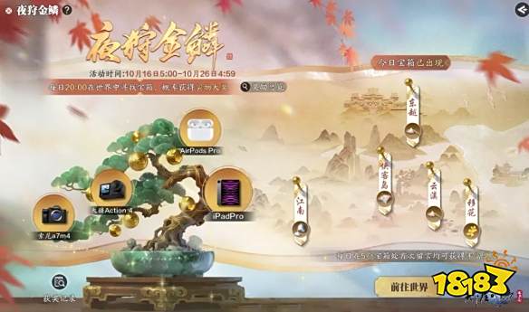 五周年庆典系列活动【五载秋水记今朝】持续进行中,打开主界面【秋水记】入口即可进入!第三弹活动【海外来客】与【夜狩金鳞】将于10月16日准时开启,更多好礼等你来拿,跟着刀妹一起来划重点吧!
