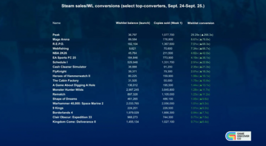 研究显示,能够引发病毒式传播的游戏表现极为突出,《R.E.P.O.》与《PEAK》等作品在仅有3-5万愿望单的情况下实现近百万销量,转化倍数高达30倍。与之形成对比的是,多数设定新颖的独立游戏虽能积累可观愿望单,实际购买率却持续低迷。分析认为,独立游戏虽能引发玩家好奇,但往往因缺乏广泛吸引力而未能促成实际购买。