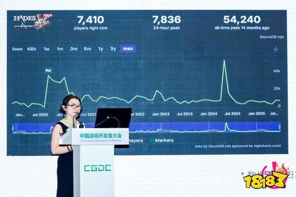 Evil Empire市场项目经理杨鑫在演讲中主要分享了独立游戏长线运营策略以及海外市场拓展的实战经验。她举了两个案例,第一个以《死亡细胞》5年运营为例,提出“交替更新法则”:免费留存更新(如更新路线图)与付费拉新更新(如恶魔城DLC)间隔发布。第二个案例,与91Act合作《苍翼:混沌效应》海外发行稳定扩展用户基础,通过3i计划提前半年公布联动消息,使Steam愿望单增长300%。她还强调开发者需保持更新节奏(年均3-4次)和玩家社区透明沟通。