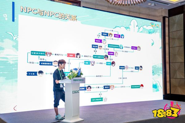 创意总监Richardo Wang强调“治愈”来自精神富足和情感共鸣,体现在NPC的个性化塑造、动态社交关系和行为逻辑,以及环境和文化元素的融合。他详细介绍了基于MBTI人格模型构建NPC多维个性,多层次互动(NPC与NPC、环境、玩家)和时间空间变化行为树的技术手段。