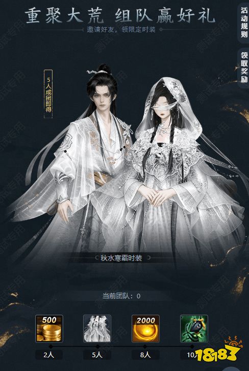 随着组队人数增加,专属奖励也将陆续解锁,包括500绑定金、封·炼化之灵(2000)!只要小队达到5人,那么全队成员均可获得永久时装【秋水寒霜】,达到10人,还能将经典坐骑【一叶扁舟】带回家!