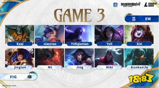 因为上局比赛努努打野非常有效果,这局比赛EW再次掏出了努努打野。而在比赛刚开始不久,努努便再次有所发挥,成功帮助双人路在下路打出了一波1-2的越塔团战。虽然EW再次在前期取得优势,但FIG这局比赛的决策明显要比上局比赛好很多。“人头”与经济一直死咬着不放。这局比赛的转折点是在比赛时间12分钟的时候,FIG选择中路推进,但很明显EW的防守与团战更加出色。不仅成功打出了一波1换4漂亮团战,更是因此拿下了关键的大龙。拿下大龙后,场上局势瞬间扭转。凭借着大龙Buff加持,EW顺利扩大经济。最后更是凭借着经济与团战的出色表现,一波带走了FIG,拿下了这局比赛的同时并获得了赛点。