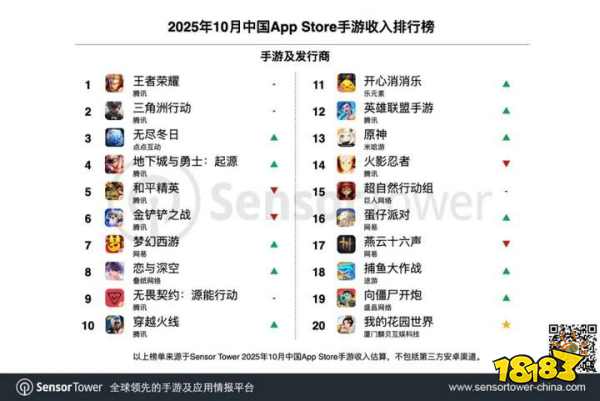 据SensorTower数据显示,《王者荣耀》仍然稳稳占据着中国手游App Store手游收入榜的榜首。虽然同为《王者荣耀》IP的《星之破晓》倒在了去年底,但《王者荣耀》手游本身稳稳占据国内手游T1梯队,坐拥数量庞大的玩家群体,这款IP仍有发挥空间。