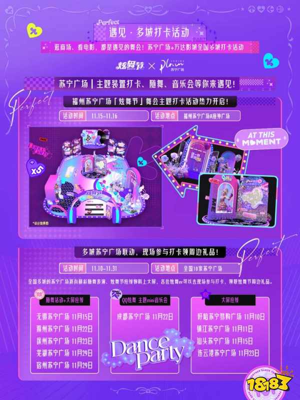 与此同时,全国多城线下炫舞主题打卡活动同步上线,11月15日-19日全国10家万达影城&11月15-16日福州苏宁广场将开启「炫舞节」主题打卡活动。精选热门商圈、精彩随舞表演、潮流地标等点位打造沉浸式打卡场景,还有万达影城电影票兑换券、炫舞节限定周边等好礼可领取,玩家可相约同城伙伴打卡,解锁城市专属惊喜,舞台C位空缺,等你来当主角。