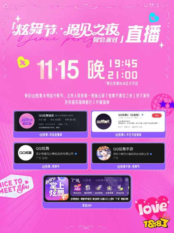 这是一场专属于炫舞玩家的派对,让玩家在派对氛围中打破次元壁,从游戏搭子变为现实好友。一起期待下这场酣畅淋漓的狂欢派对,在律动和欢笑中邂逅不期而遇的惊喜。11月15日,广州琶醍,我们不见不散。