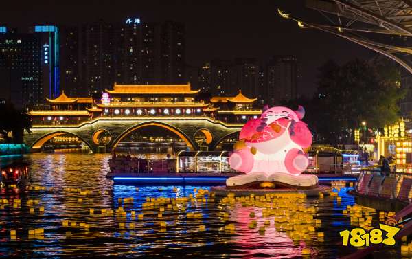 继续前行,铁像寺水街以“胖胖龙水街祈福”为主题,将电竞观赛与传统文化融合,打造独具成都气质的体验空间。玩家可乘皮划艇漂浮水上,边观赛边为弈士助威;岸边茶馆同步赛事直播,烟火气与竞技感交错,构成属于成都人的电竞慢生活。夜色中,祈福灯随水漂流,象征好运汇聚、心愿成真。