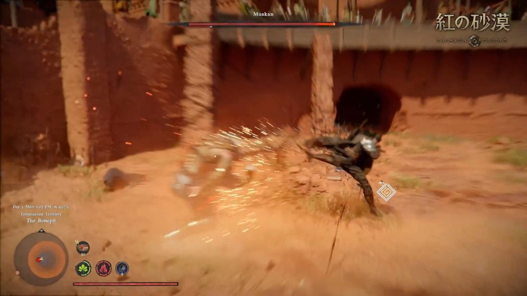 从演示画面来看,《红色沙漠》的战斗系统融合了多种战斗风格,包括拳击、踢击、斩击、远程射击以及元素系技能等,呈现出爽快与策略并重的动作表现。三位Boss的战斗设计风格鲜明,分别代表了力量、远程与狂暴三种路线。