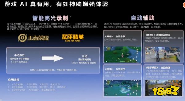 “AI是一个大家都在追的风口和趋势,现在一些AI相关的应用已经完全融入到我们的生活里面了,那为什么AI技术不能和游戏融合?基于AI技术和我们获取的数据,包括和游戏厂商的合作,来打造一些辅助向的功能。但一个底线是,不希望AI能力破坏游戏公平性,所以现阶段我们也在往情感化陪伴的方向去探索。”产品经理孙睿介绍起iQOO Neo11配置AI功能初心。