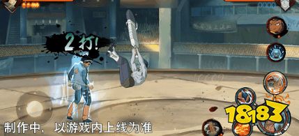 青春凯的二技能同样有三段,点按会释放一段,青春凯下蹲旋转扫腿,此时可拉摇杆控制y轴位移,若命中敌人,则自动释放二段,青春凯瞬至敌人身后肘击,并再迅速冲至敌人身前,随后进入第三段,凝聚释放一记昼虎冲击前方敌人。
