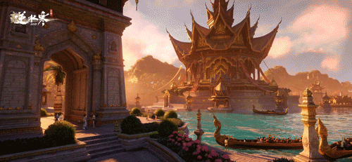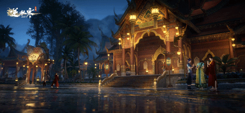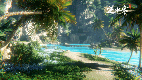 新场景南陀岛的植被特效、气雾特效与风的联动效果极佳,棕榈叶片层叠起伏如绿浪翻涌,夜市灯笼穗带摇曳成流霞,海滩雾气遇礁石分流绕行。风与物的互动,在此达到技术美学新高度,欢迎各位同门体验。