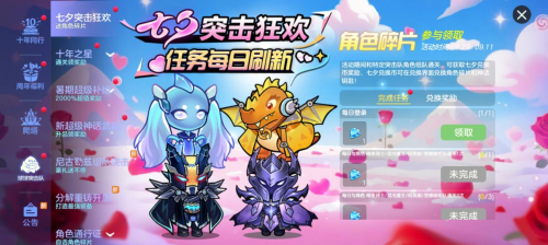 七夕狂欢于8月29日至9月11日正式开启!完成每日任务免费领取七夕兑换币,与好友开黑收集更多兑换币,可兑换「混沌魔王碎片」、「阿芙娜碎片」、「芭娜娜碎片」、「暗夜骑士碎片」、「神话角色钥匙」等珍贵道具!同时限时上架角色的奇迹能量连锁礼包,助力球宝快速解锁新角色开启冒险!
