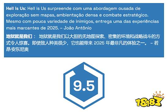 《地狱即我们》获外媒comboinfinito 9.5分超高评价,被誉为“2025年最伟大的游戏之一”,其大胆的“无地图探索”设计、浓厚氛围感及策略性战斗获盛赞,虽敌人种类稍显不足,但独特体验仍使其成为年度最值得关注的作品之一135。