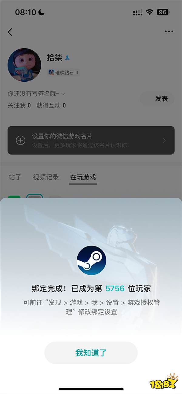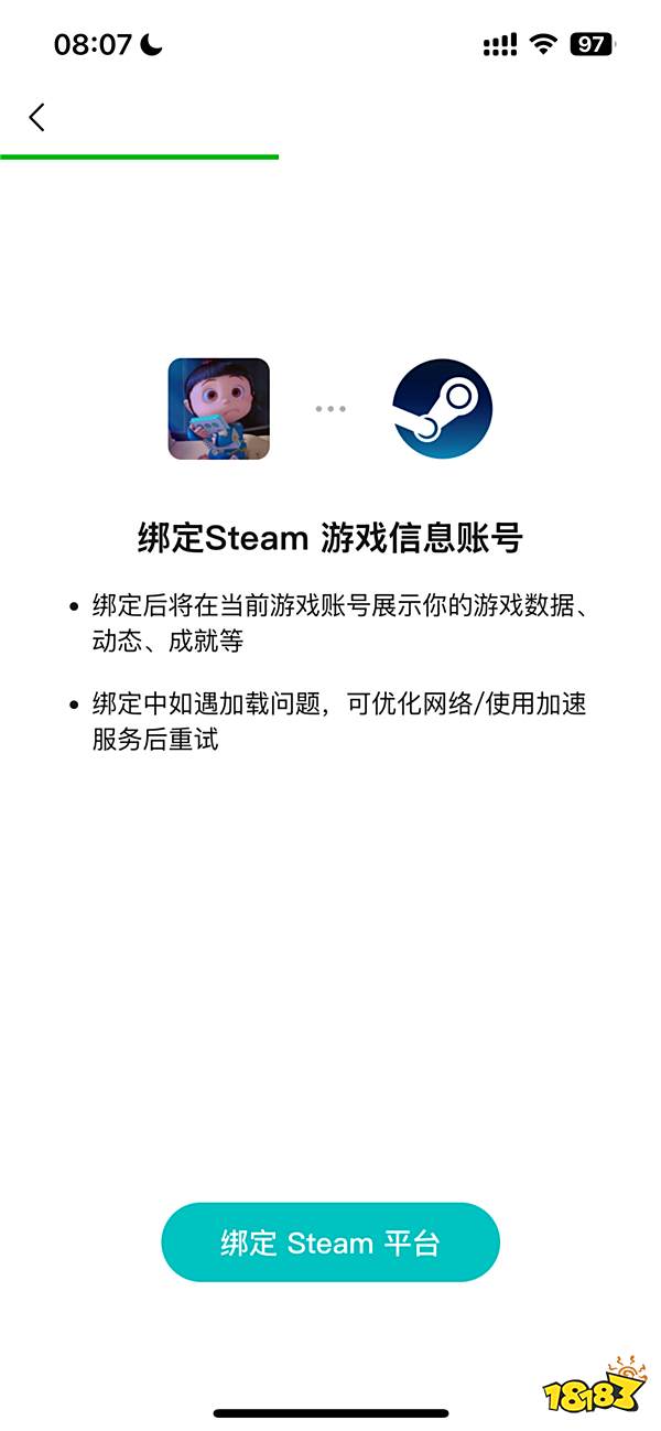 微信绑定路径:发现页-游戏-点击右上角“小人”图标,进入即可绑定Steam账号。