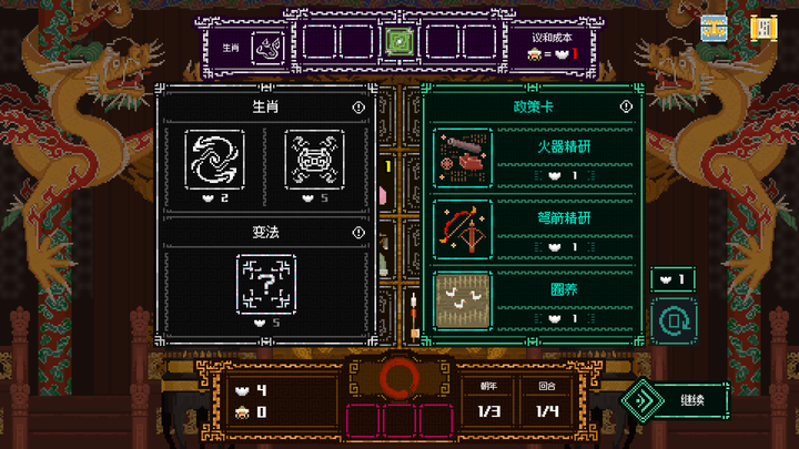 有时随机事件也会让您猝不及防——警惕鼠疫或是蝗灾,调整您的治国方针,力求平稳度过每次的天灾人祸。泱泱大国管理不易,善用“变法”,或是更改元年生肖,或许就能拨云见日。