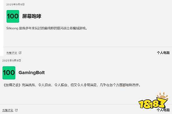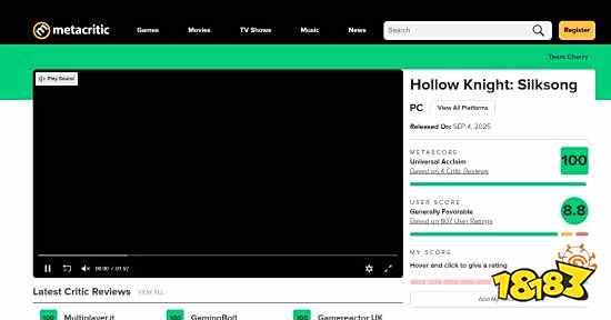 值得一提的是,不只是M站,《空洞骑士:丝之歌》在OpenCritic上同样获得了100分满分!这也是该平台唯一一款满分的游戏。
