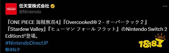 在昨晚的任天堂直面会上,官方宣布多款热门游戏将推出Switch 2强化版本,包括《海贼无双4》《胡闹厨房2》《星露谷物语》及《人类一败涂地》,首批作品将于2025年秋季起陆续发售,全面发挥新主机性能优势。