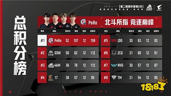 随后的几场,17战队、4AM、CTG等老牌战队的底蕴则是进一步被激发,在每局的最后4强中不断得分。