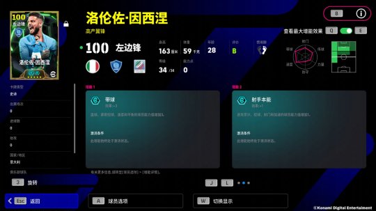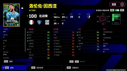 因西涅的增能属性为【带球 +3】,顶级的盘控数值让他制霸球队左路!因西涅还自带特殊技能【弧线落叶射门】,搭配上不俗的射门数值,他也能在禁区外,搓出漂亮的弧线直挂球门死角!