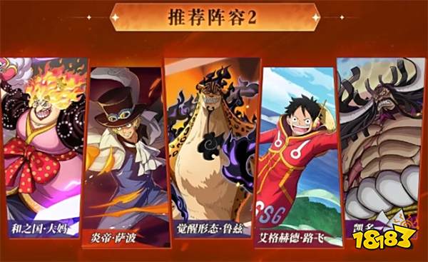 阵容二:和之国·大妈 + 炎帝·萨波 + 觉醒形态·鲁兹 + 艾格赫徳·路飞 + 凯多