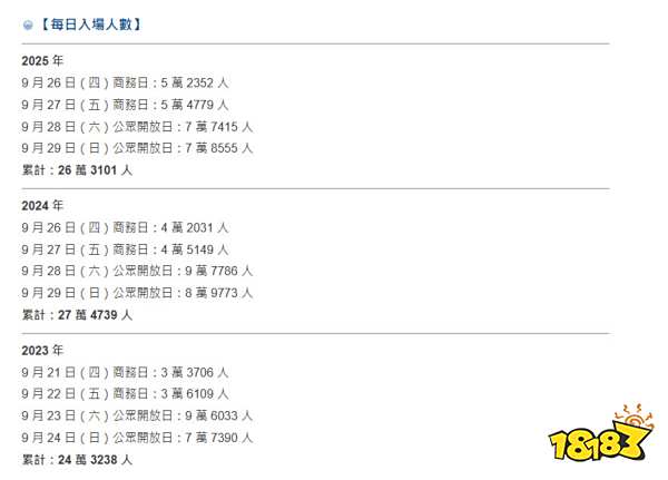 今年东京电玩展的参展企业与团体数(1136家)以及参展摊位数(4157个)皆创下历届新高。头两天的商务日入场人数是近三年之最,突破10万大关,来到10万7131人。不过后两天公众开放日的入场人数显着减少,只有15万5970人,比去年少了约3万人。四天累计26万3101人,较去年减少约1万人。