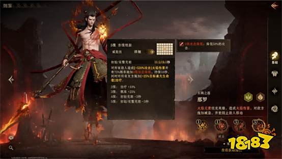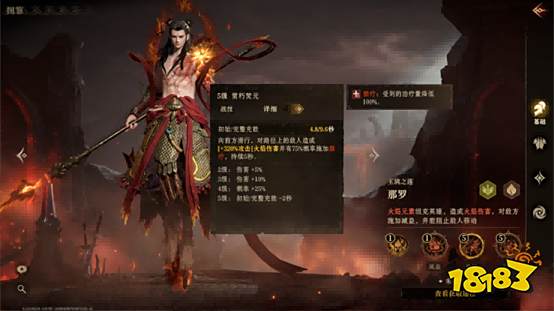 而那罗的威能技赤绫绝脉则真正展现了他作为团队核心的价值。该技能对全体敌人造成火焰伤害,并附加二级攻击降低效果,持续10秒;同时为全体友军提供治疗。更重要的是,此技能可触发被动,使敌方全体陷入无法移动的状态,形成群体压制,兼具削弱、控场与治疗三重效果。