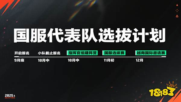 2025年,三角洲行动电竞热潮持续升温!备受期待的全面战场国际邀请赛正式定档——这场聚焦 “全面战场模式” 的全球巅峰对决,将于12月在越南震撼开赛,全球顶尖战队将齐聚一堂,竞逐专属该模式的世界总冠军荣誉。为组建最强国服代表队,十月将同步开启选拔赛通道:所有玩家均可自由组建战队报名参赛,通过层层较量最终决出一支王牌队伍,代表国服出征越南,站上国际赛场的舞台!