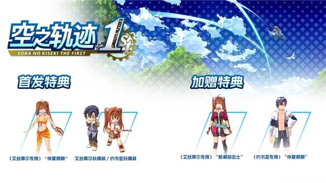 活动期间内,所有已购买《空之轨迹 the 1st》steam版本的玩家(含此前购买的玩家),皆可加赠2款原创DLC服装。