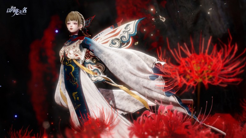 如果说梦遐绮旅六星时装是西式童话幻想的狂欢,那五星锦思蝶翎套装则是东方美学的深情表达。这套时装特邀非物质文化遗产羌绣代表性传承人陈云珍老师联合创作,将千年羌绣技艺与新中式设计融合,让非遗文化在数字世界焕发新生。