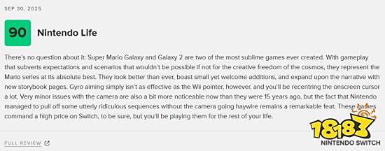 《超级马里奥银河1+2合集》于2025年10月2日登陆Switch平台,M站媒体评分解禁后获90分均分(28家媒体参与评测),无中差评。本作为Wii原版高清重制,新增绘本剧情、帮助模式及完整原声带,支持免费升级至Switch 2版并实现4K画质,但Joy-Con体感操作精度与70美元定价引发部分争议 。