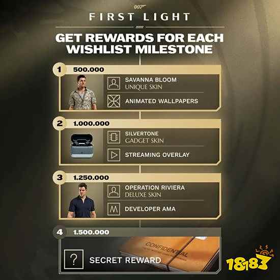 IO Interactive宣布,《007:初露锋芒》玩家愿望单数量已突破125万人,成功解锁“里维埃拉行动”豪华皮肤及开发者AMA活动。游戏定于2026年3月27日登陆PC、PS5、Xbox Series X|S及Nintendo Switch 2平台,Steam国区售价298元,预购可免费升级豪华版并获24小时抢先体验资格。本作聚焦26岁的詹姆斯·邦德起源故事,引入BLUFF“忽悠”系统及高科技道具,结合环境互动与电影化演出,打造不同于《杀手》系列的沉浸式特工体验 。