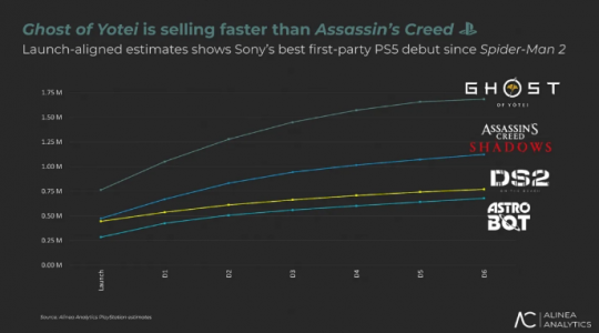 若将零售商采购量计入,总出货量已突破200万份,预计带来约1亿美元收入。尽管首发表现强劲,但分析指出其销售速度略低于前作《对马岛之魂》(该作发售三天内销量超240万份)。