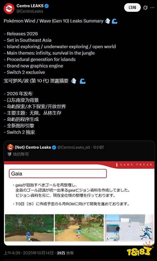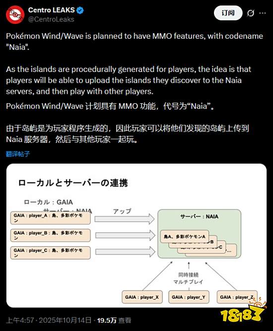 爆料还显示Game Freak计划在第十世代中融合MMO玩法元素。该MMO功能代号为“Naia”,玩家可以将自己探索到的程序生成岛屿上传到Naia服务器,与其他玩家共同游玩。