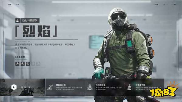 职业“烈焰”则擅长运用火焰与毒气分割地形,将区域化为对手的炼狱。其基础能力“特制喷火器”可以轻松对密集敌人造成伤害。