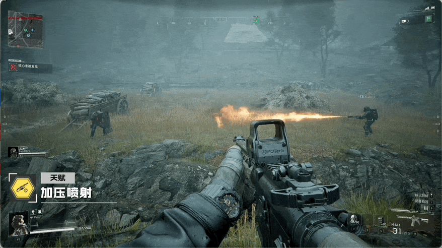 通过天赋树解锁的“加压喷射”、“过热超载”两种分支能力,则分别可以让玩家进一步强化喷火器的杀伤距离、或火焰伤害。