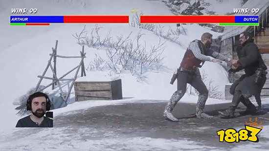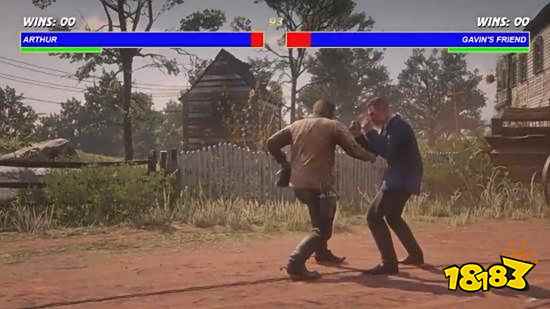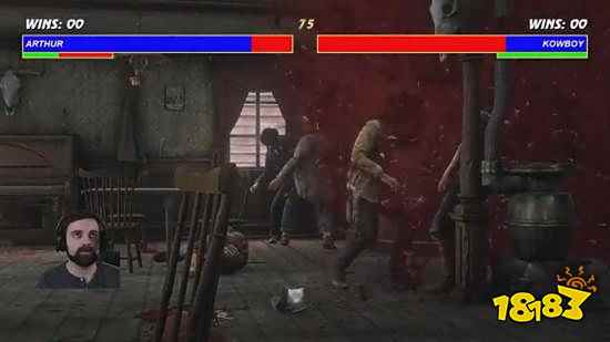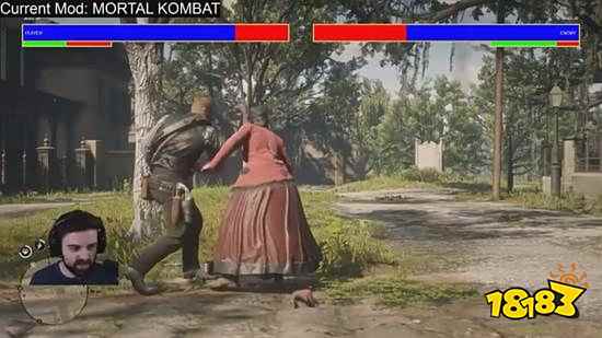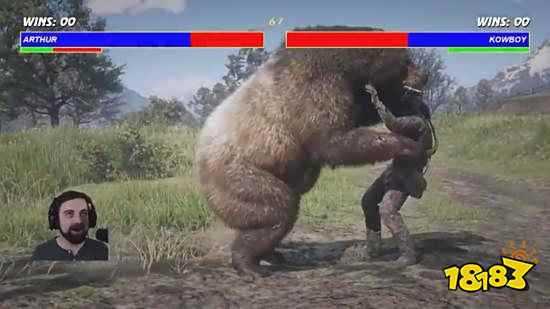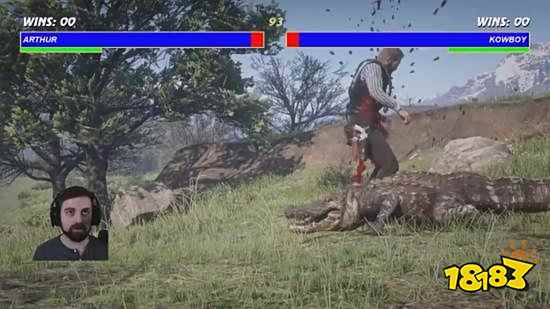 在他的模组中,亚瑟一旦触发拳斗,镜头就会自动切换为经典《真人快打》的横版视角。Blurbs 还加入了生命条、音效、连击系统,甚至还做出了终结技。格斗的对象也不局限于人类,甚至还包括棕熊、鳄鱼这些凶猛野兽。