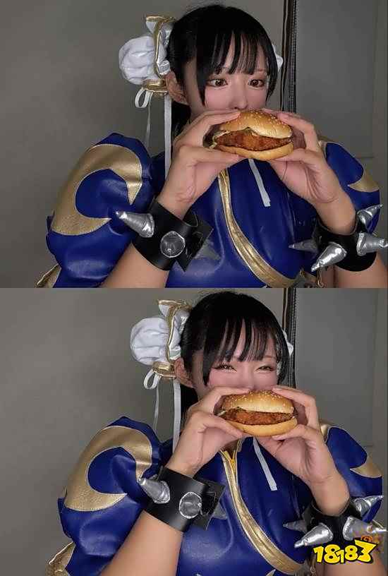 2025年10月,日本麦当劳与《街头霸王》联动推出隆、春丽、肯主题汉堡,并通过像素风广告片将波动拳招式与食材创意结合;Coser@kimimo_purin精准复刻宣传片中春丽吃汉堡场景,其标志性"蜜大腿"及表情还原度引发社交平台病毒式传播,实现跨界营销与粉丝共创的双重效应。