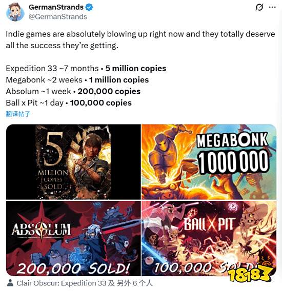 此前外媒THEGAMER就曾发文表示,在3A制作渐趋商业化的背景下,玩家更青睐倾注创作初心的项目。《光与影:33号远征队》开发团队Sandfall Interactive此类“意外成功”的价值,也折射出玩家对公式化大作的审美疲劳。