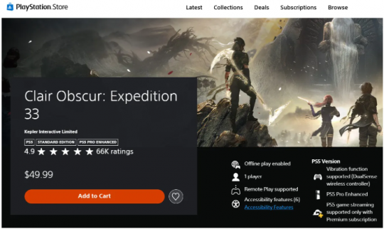 这款由Sandfall开发的作品近期在泰国游戏展斩获包括年度游戏在内的多项大奖,目前以4.9分位居PS商店榜首,《死亡搁浅2》(4.88分)与《羊蹄山之魂》(4.82分)紧随其后,其后是《双影奇境》《海之剑》等作品。
