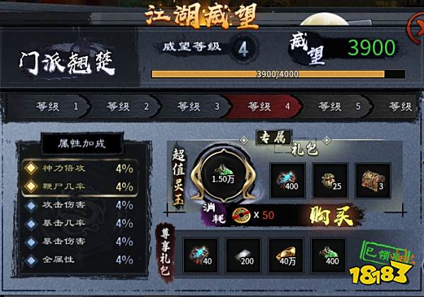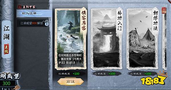 从初出茅庐的虾米到闯荡江湖的大侠,必不可少的就是各种奇闻奇遇,以及功力的成长过程了。《千击武侠沉默》中设计了一个完整耐玩的任务系统,玩家跟着主线一路完成任务可以获得江湖威望,威望一方面可以解锁下一阶段的任务,一方面可以提升威望等级,从而获得属性加成和各种奖励。