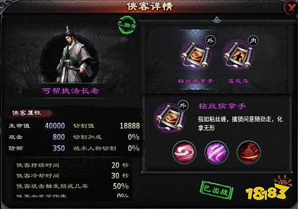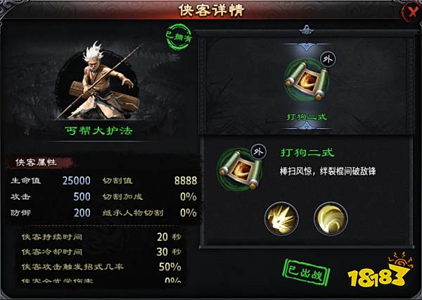还记得在初入江湖时结缘的那位江湖侠客吗?离开第一大陆后TA也飘然而去,但江湖讲的就是四海之内皆兄弟,很快玩家就会接触到更多这样的“伙伴”,比如说在第二大陆,拜入丐帮后不久,通过指定任务就能认识一个“丐帮大护法”侠客,他会隔一段时间出现一次,帮助玩家战斗,除了普通攻击外,他还有概率触发群体切割伤害,对于初入江湖不久,输出能力不强的玩家来说是个非常靠谱的伙伴。