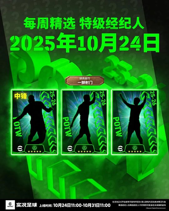 【每周精选 特级经纪人(10.24~10.31)】即将上线,你将有机会获得本周在赛场表现优异的精选球员。