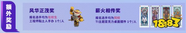 踢馆赛道同样奖励丰厚:赢一场即得捏捏乐盲袋、镭射纪念票与水笔;前三名战队获额外周边礼包;冠军更可参与终极挑战赛,冲击更高荣誉与奖金。此外,赛事还设有“风华正茂奖”(全员在校生队)与“薪火相传奖”(全员同校队),获奖战队每人可分别获得工程师粘土人手办或TI主题亚克力桌面摆件。